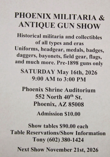 Phoenix Militaria Show, May 16TH 2026, PLEASE NOTE NEW NOVEMBER DATE
